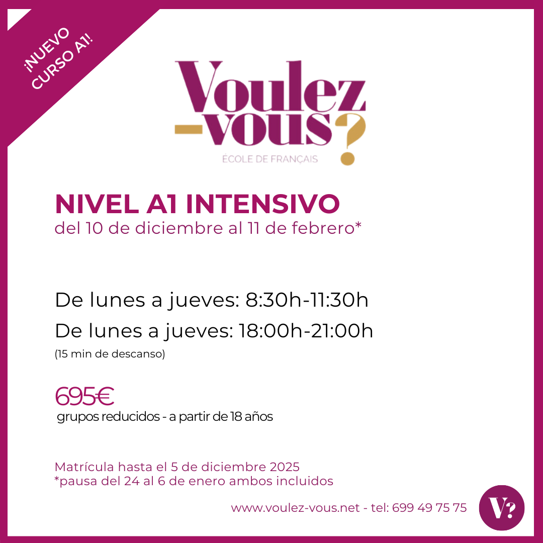 Curso de Francés – Nivel A1 intensivo (diciembre-febrero)Curso de Francés – Nivel A1 intensivo (diciembre-febrero)