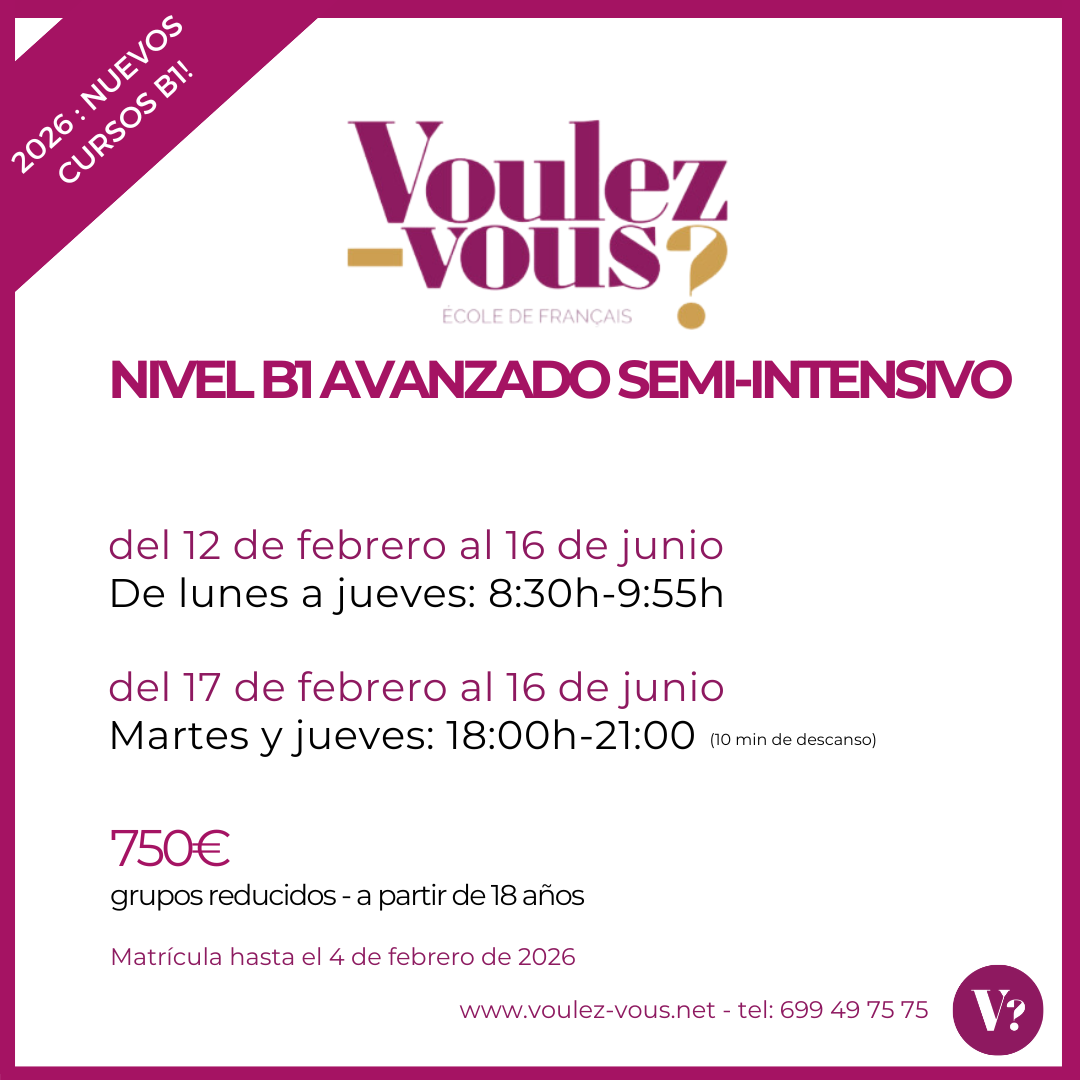 Curso de Francés – Nivel B1 AVANZADO semi-intensivo (febrero-junio)