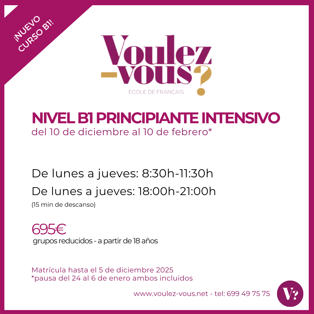 Curso de Francés – Nivel B1 intensivo (diciembre-febrero)Curso de Francés – Nivel B1 intensivo (diciembre-febrero)
